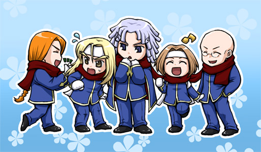 そして後日、薫たんが編んでいたマフラーが完成してみんなで巻いてみたの図↓